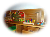 ◎来院していただくお子さん達に木の温もりを感じてほしいという院長のこだわりで、プレールームの玩具の多くは木製です。